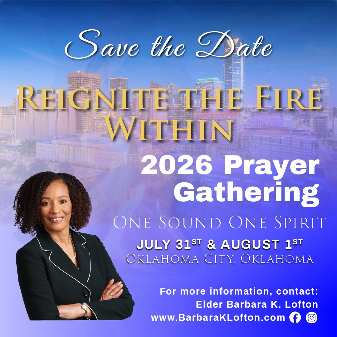 Reverend Dr. Barbara K. Lofton hosts Reignite the Fire Prayer Call each Saturday at 8:30 CST/9:30 EST. Call (267) 807-9601 code: 717643